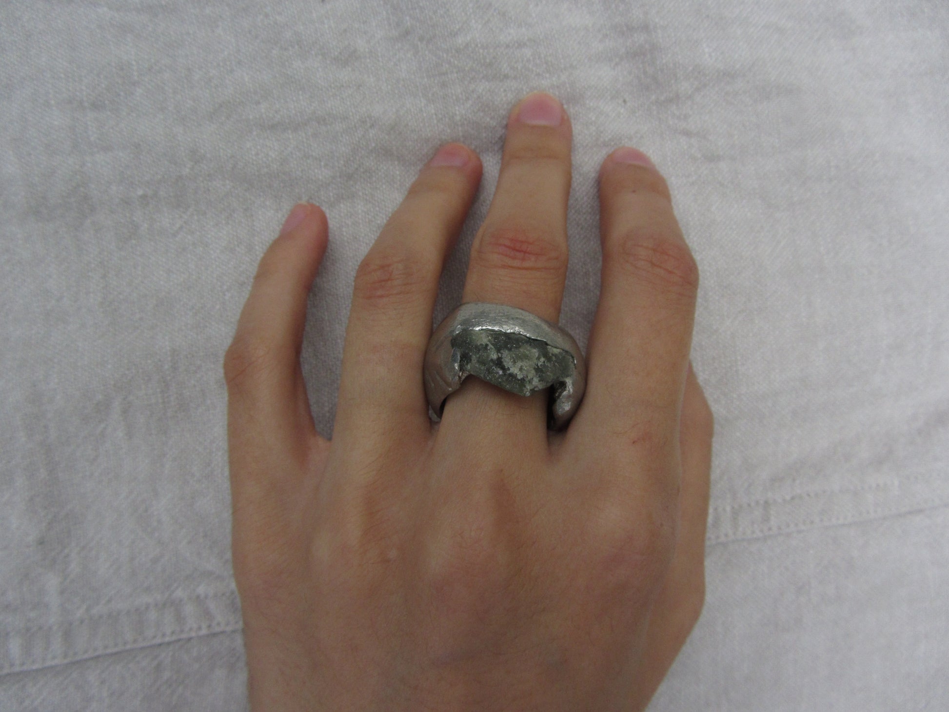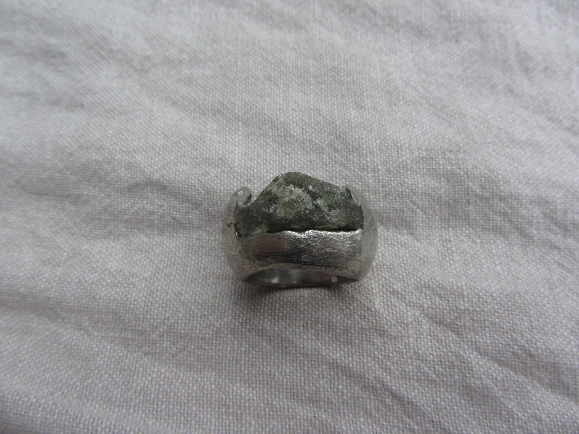 unique handcasted organic ring with peridot stone