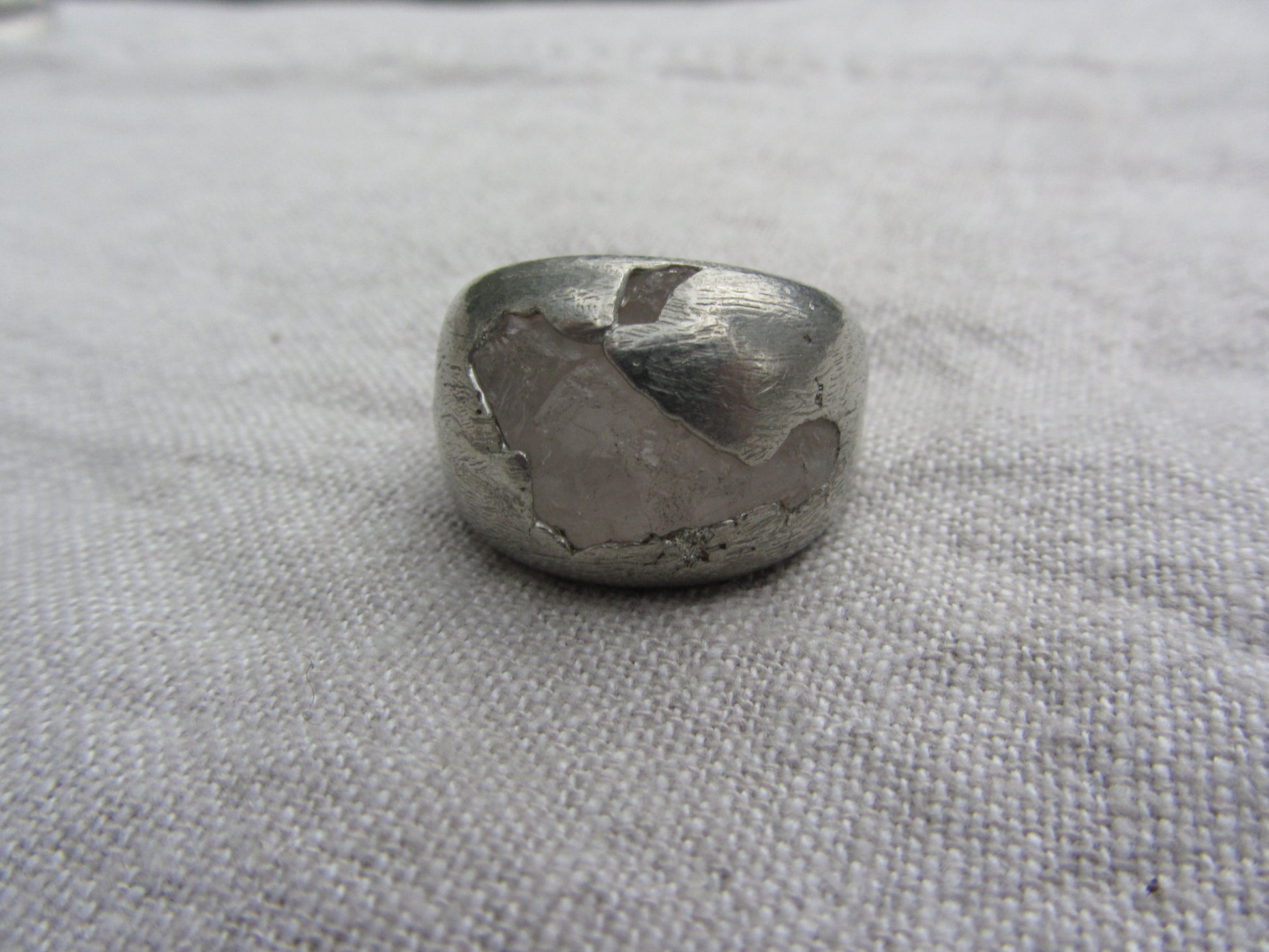 unique handcasted organic ring with quarz