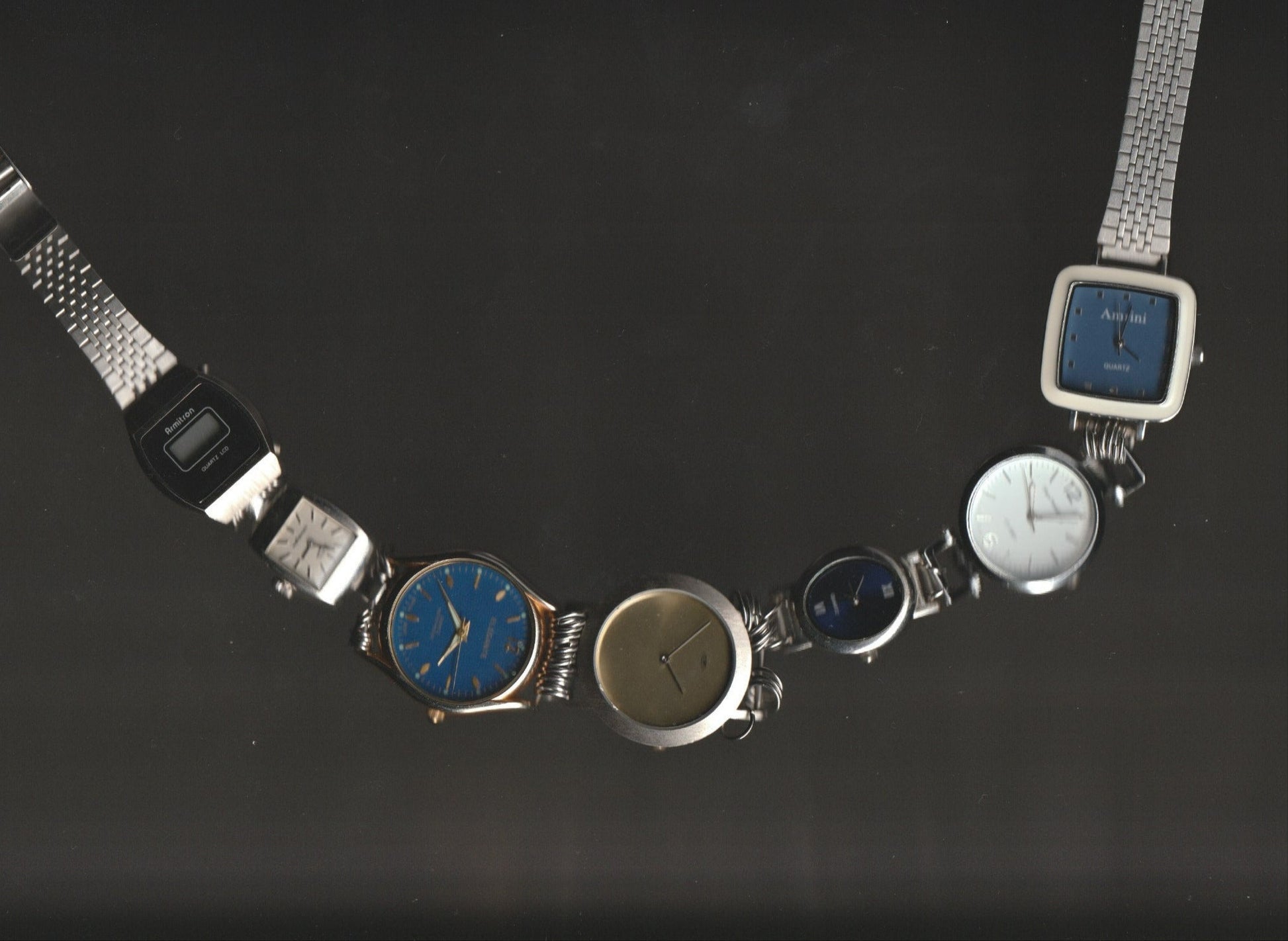 stainless steel, length: adjustable like a watch bracelet between 35 - 44 cm (please note: my usual upsizing option is not available on this necklace)